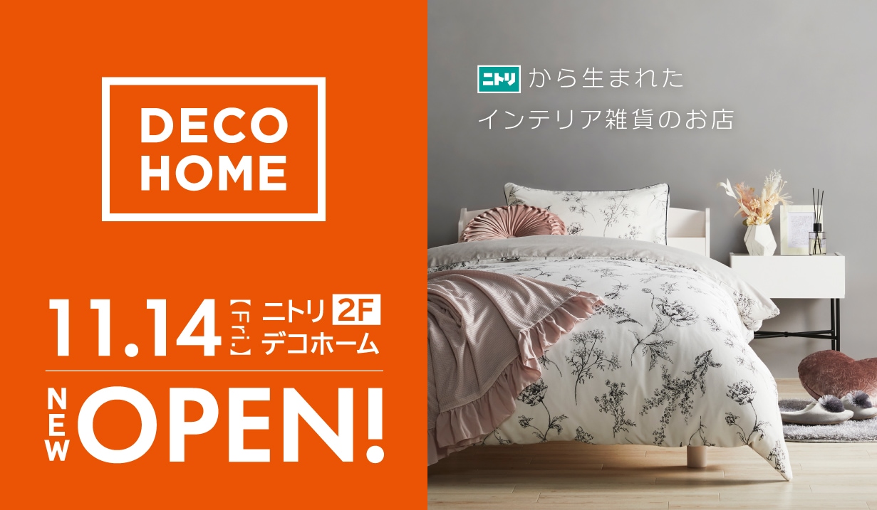 11/14㊎ニトリ【DECO HOME】OPEN!「お、ねだん以上。」のニトリから生まれたインテリア雑貨のお店、ニトリ【DECO HOME】が11/14㊎2階にオープン致します!是非ご利用くださいませ! -
