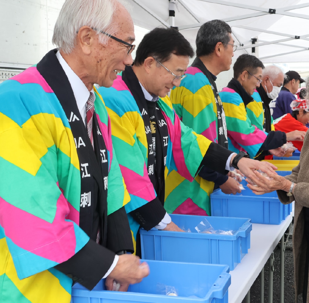 稲の収穫も終わり、新米が食卓に乗っていることかと思いますが、既に来年度へ向けての農機具の展示会が開催されました。会場ではキッチンカー等の出店がある中、当JAの青年部ではテントで里芋の汁物の販売をしました。また、別の日のイベントでは江刺りんごの販売会も行い、ご好評をいただきました。