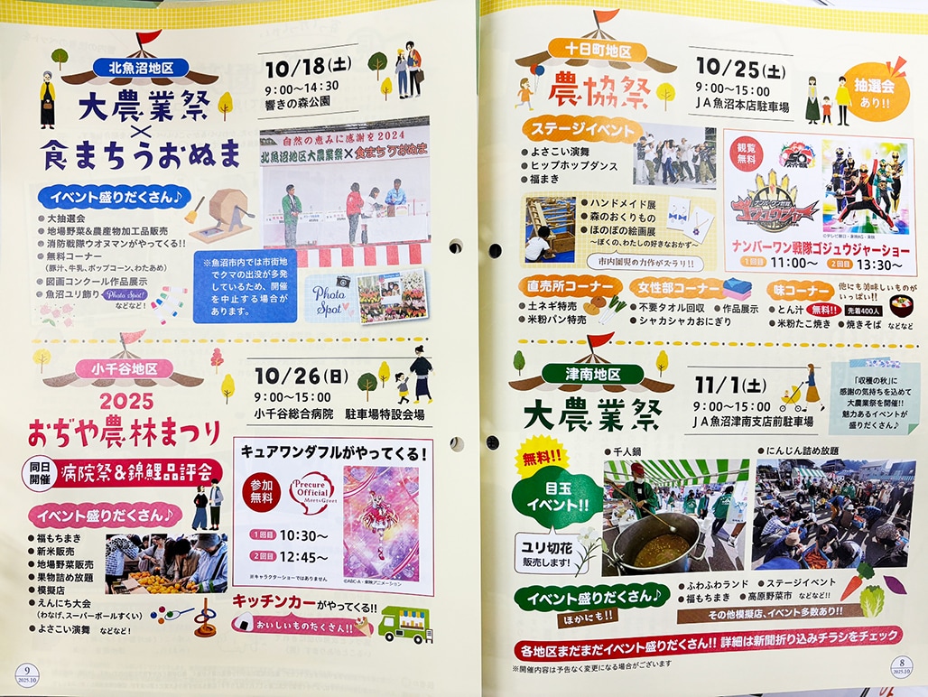 風が冷たく、秋の気候に夏の暑さが懐かしくなるこの時期。津南町では、11月1日にJA魚沼農業祭が行われます。毎年大盛況のこのイベント、今年は合併2年目ということで津南地区だけでなく、それぞれの地区でおにぎりの販売が行われます。他にもステージパフォーマンスがあったり、キッチンカーが来たりと盛りだくさん。楽しい企画をご用意しておりますのでぜひ、この機会に秋の魚沼津南へ遊びに来てみてはいかがでしょうか。みなさまのご来場をお待ちしております。