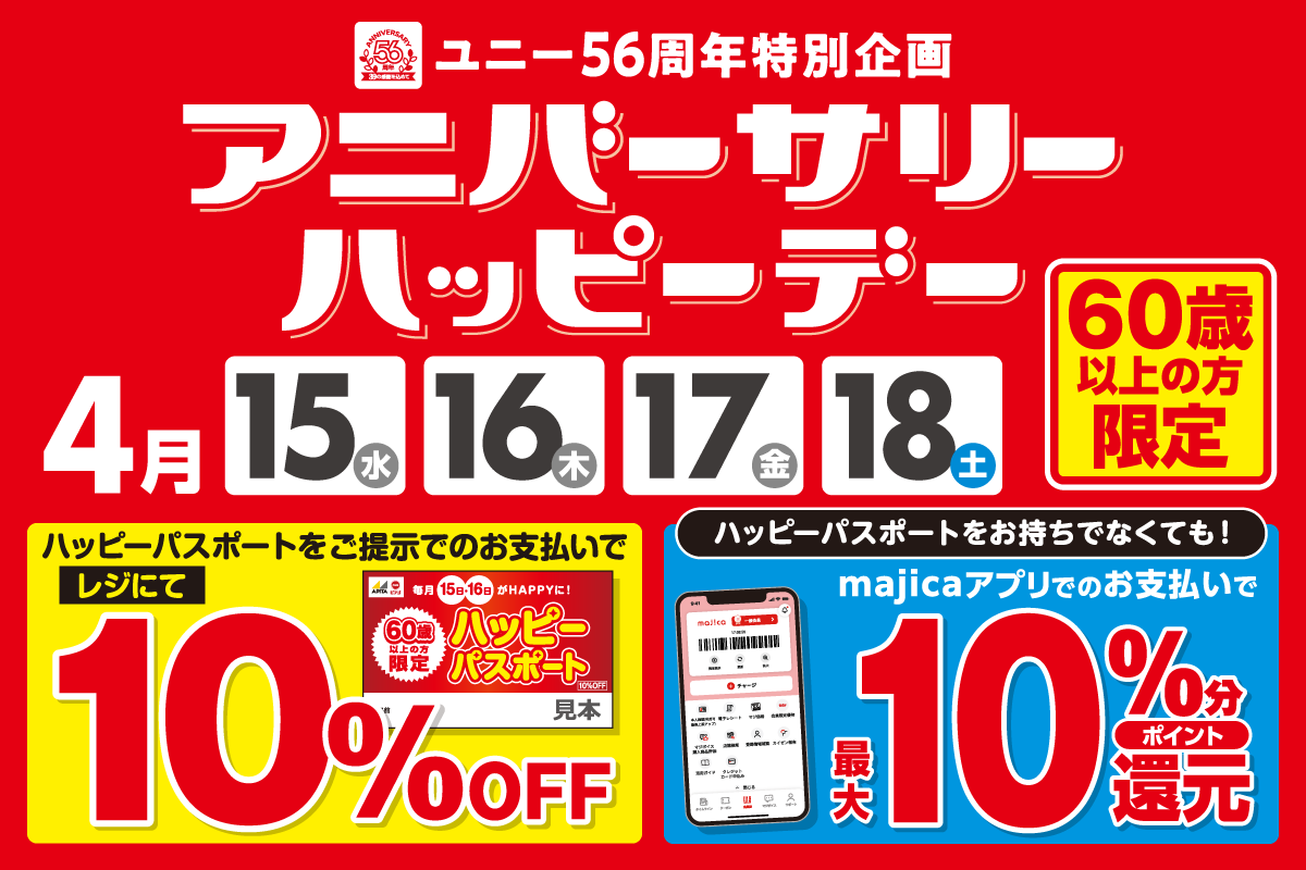 ハッピーデー 4月は15日(水)〜18日(土)の4日間!