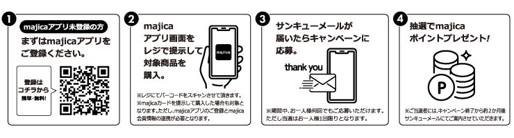 ※majicaアプリ登録当日の購買はサンキューメール対象外となります。