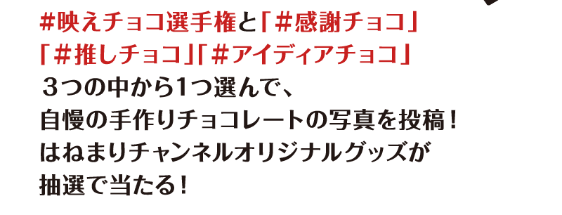 あなたの手作りチョコを自慢しちゃおう!映えチョコ選手権開催!はねまりチャンネルコラボ企画