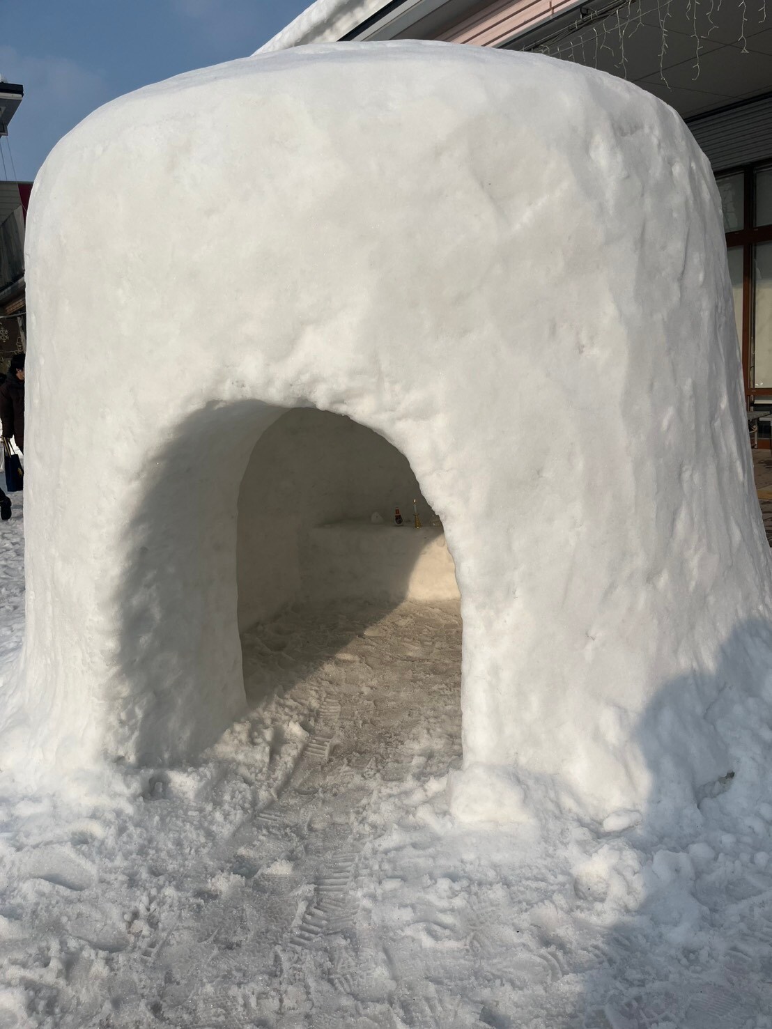 今年も横手のかまくらの時期が近づいて来ました。毎年2月15日.16日あたりになると横手の伝統行事としてかまくらが開催されていました。今年は3年ぶりの開催となります。かまくらは元々家内安全や五穀豊穣を祈る行事としても有名だったんですよ。今年も少なめの雪をかき集め現在はメイン通りで10基以上作成されていました。この写真の状態から人が入れる大きさに穴を開けて祭壇を作ります。一度いらしてみて横手のかまくらの幻想的な雰囲気味わってみてください。