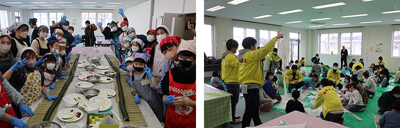1月10日に食育事業の一環として、JA江刺親子フェスタが開催されました。児童32名が参加し、親子料理教室で江刺りんごのコンポートとロングのり巻きをつくり、みんなで食べ、お絵かきフライングカイトを工作し、元気に外で飛ばしました。