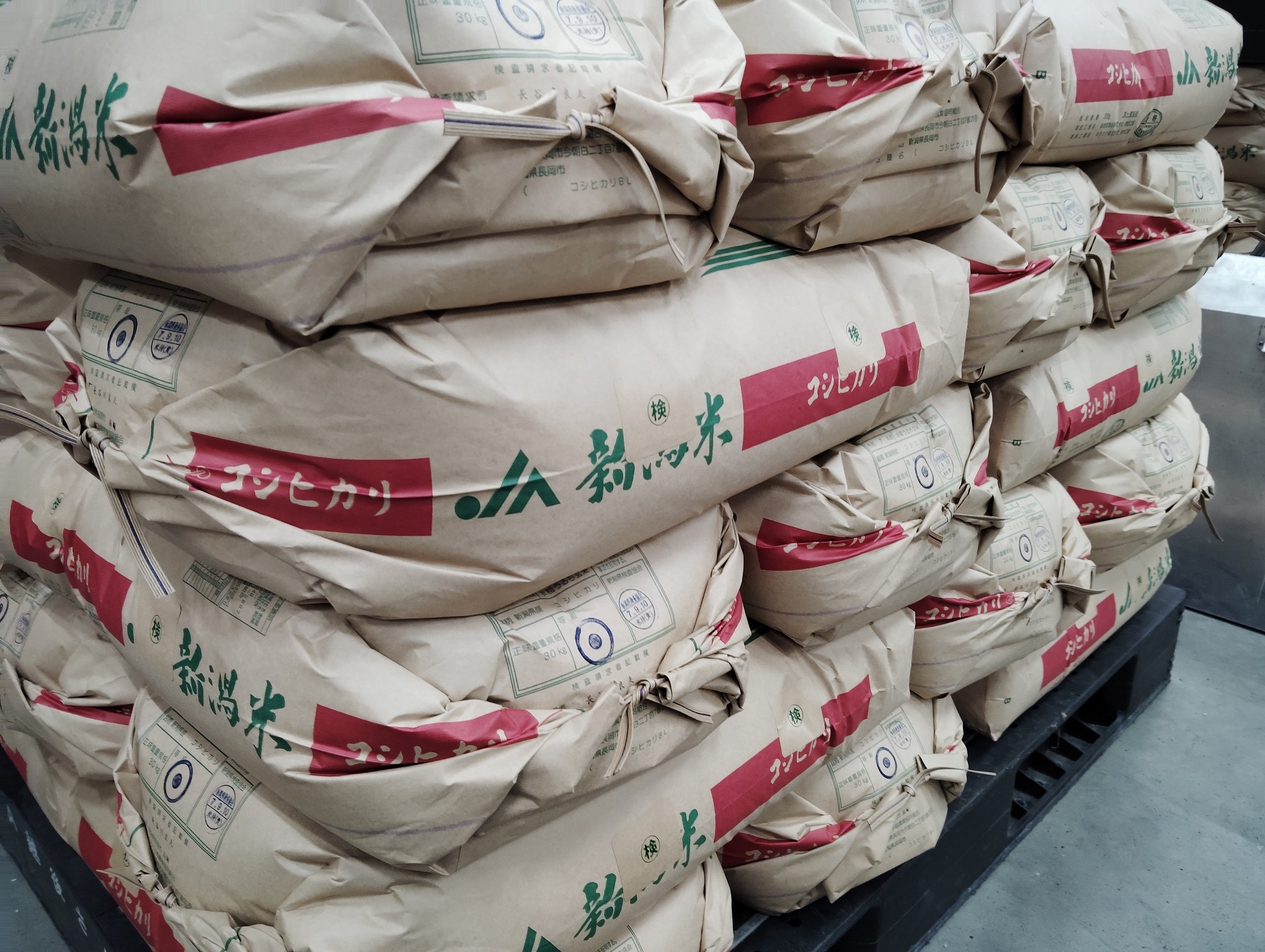 JA全農新潟県本部 にいがた精米工場にて精米・袋詰めします。約10時間後には共配センターに到着。各店に配送されます。