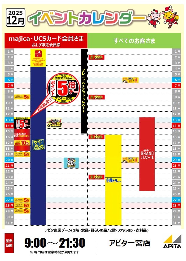 アピタ一宮店のおトクがまるわかり!12月イベントカレンダー!