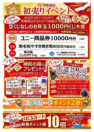 アピタ鳴海店 新春イベント!アピタ鳴海店 新春初売りイベントを盛りだくさんご用意いたしました。