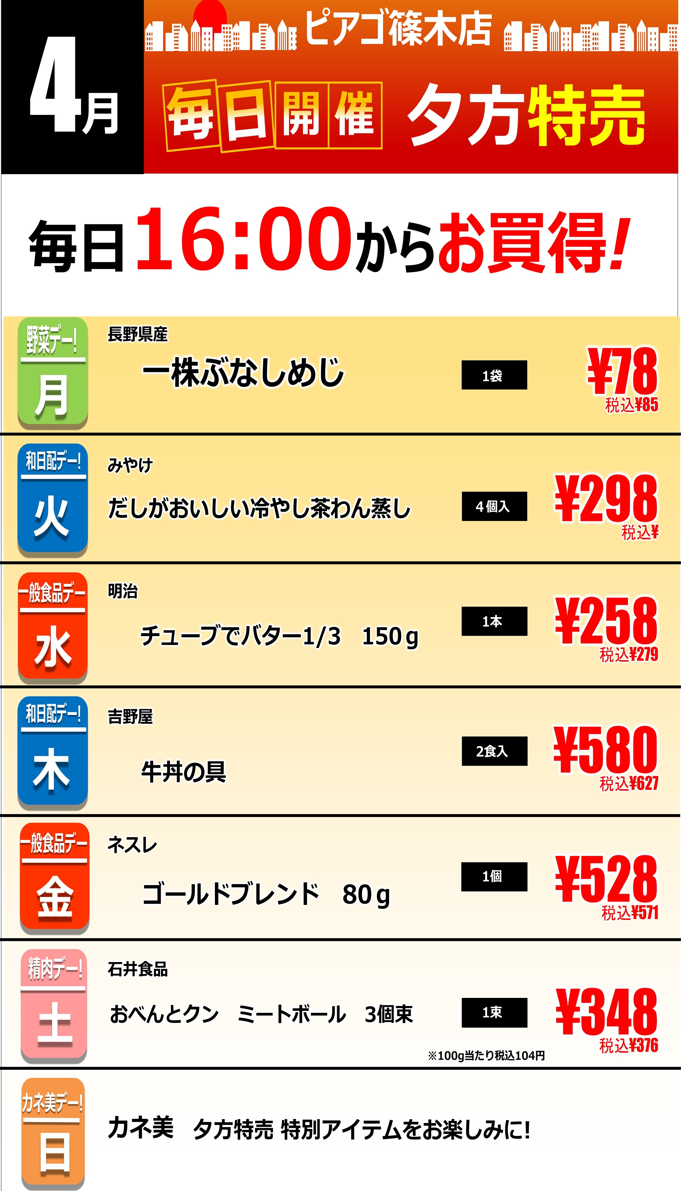 毎日16:00から篠木店の夕方特売開催♪