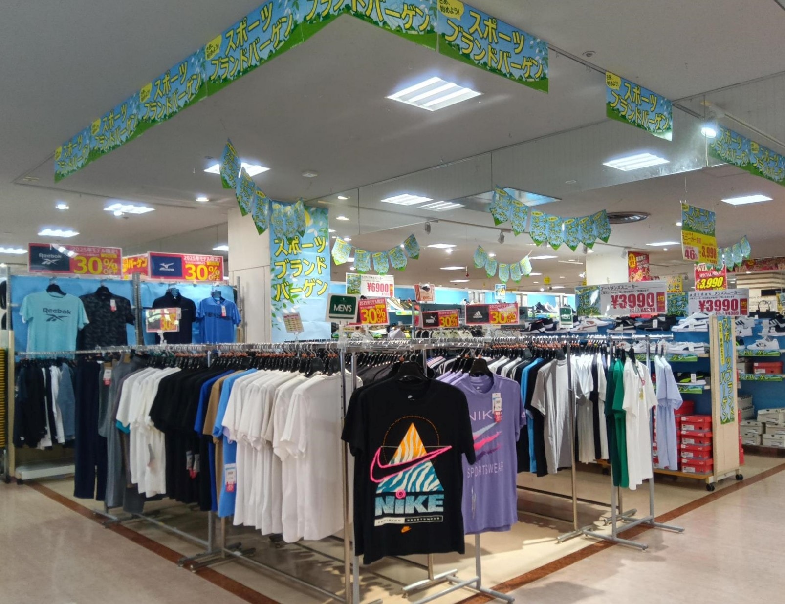スポーツブランドバーゲン&インポートブランドFAIR開催中‼ただいま2F中央催事場では、2つの催事を好評開催中‼1つ目「スポーツブランドバーゲン」アディダス・プーマ・ナイキ等のTシャツ限定品がレジにて30%OFF‼またブランドスニーカーは恒例の4990円均一を始め、人気ブランドを多数ご用意いたしております!