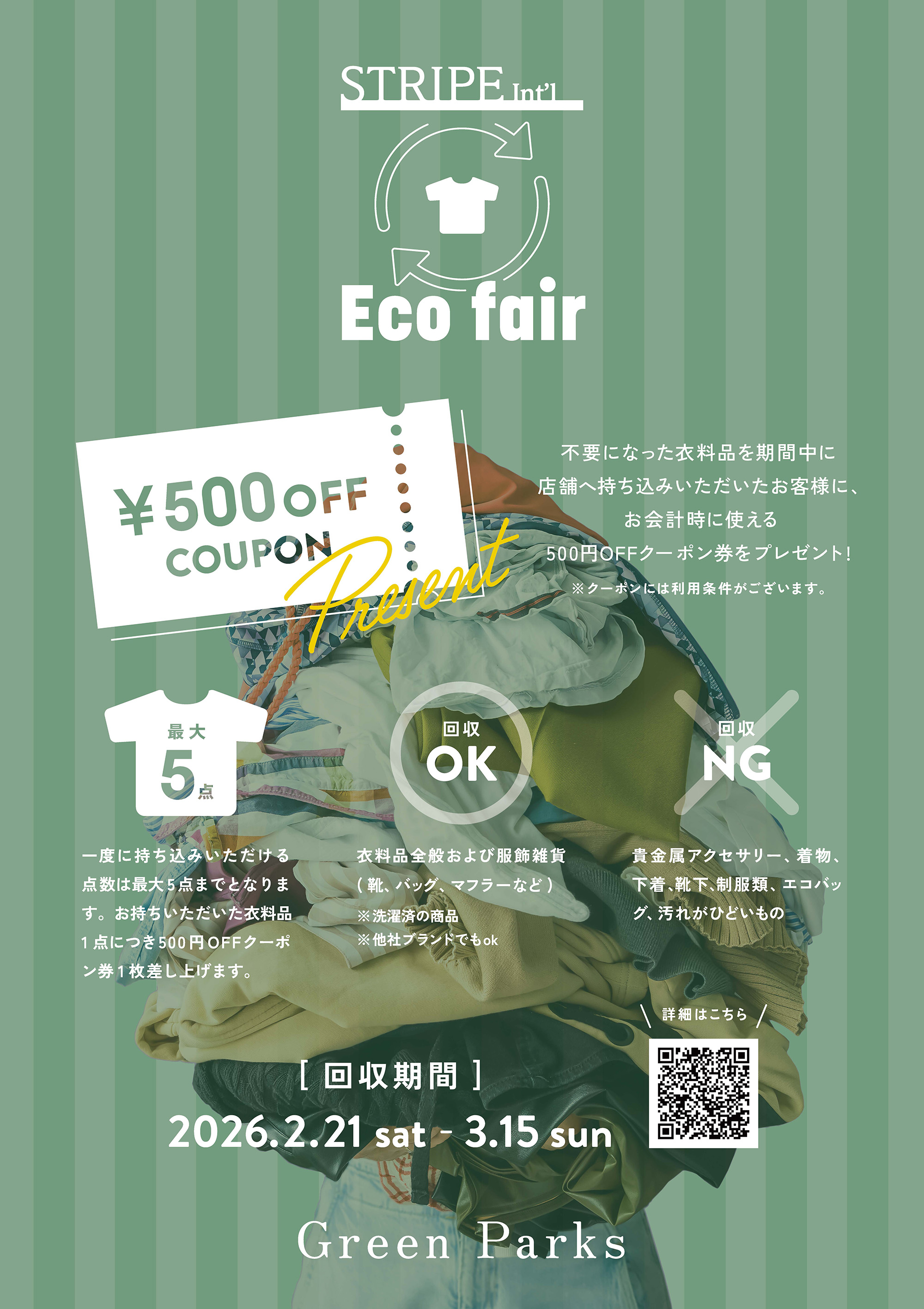 グリーンパークストピックからのお知らせ3/15(日)まで不要になった衣料品を店舗へお持ち込み頂いたお客様にお会計時に使える500円OFFクーポンをプレゼント!是非ご利用くださいませ。.jpg)
