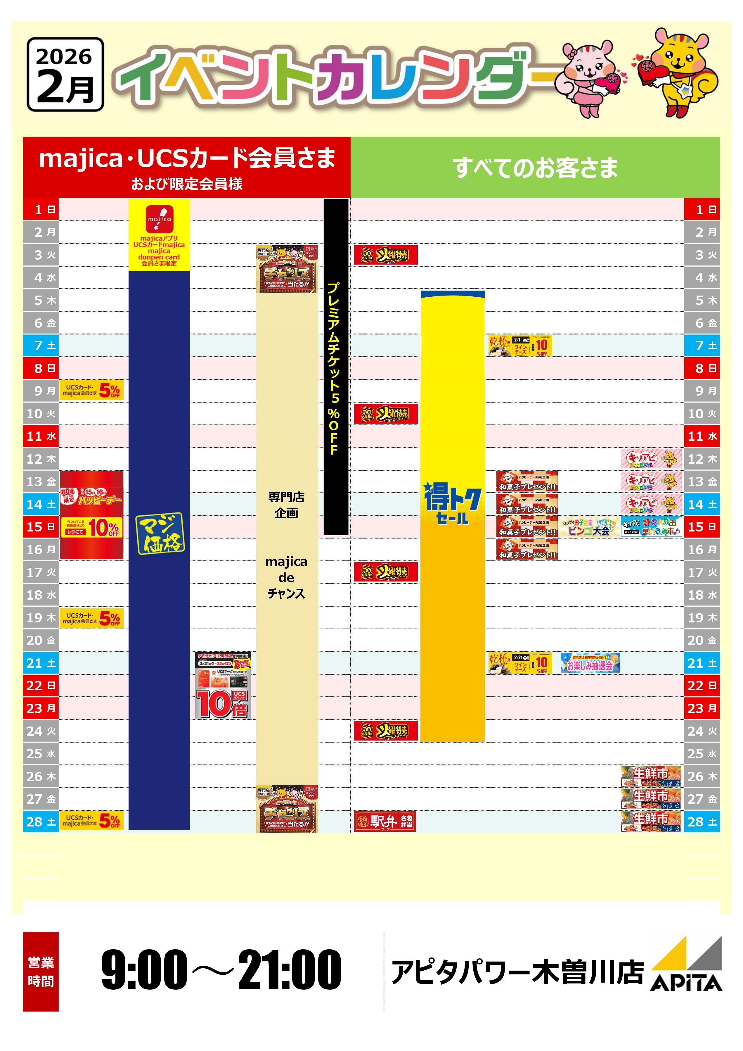 アピタパワー木曽川店 2026年2月度 イベントカレンダー