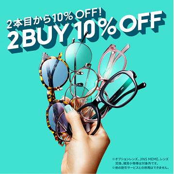 【店舗限定】2本目から10%OFFまとめ買いキャンペーン実施中!JINSでは、メガネやサングラスのまとめ買いで2本目から10%OFFになるキャンペーンを実施中です。(※)お一人様での複数本購入でも、新しくできたご友人やご家族との複数名でのご利用も対象となります。メガネやサングラス、PC・スマホ用メガネのJINS SCREENなどバリエーション豊富な商品をラインアップしていますので、この機会にぜひご利用ください!※オプションレンズ、JINS MEME、レンズ交換、雑貨小物等は対象外です。※Snow Peakコラボを含むまとめ買いは、Snow Peakコラボ以外の商品を値引きいたします。※他の割引サービスとの併用はできません。※セール品との併用は可能です。※本キャンペーンは予告なく変更・終了させていただく場合がございます。【期間】