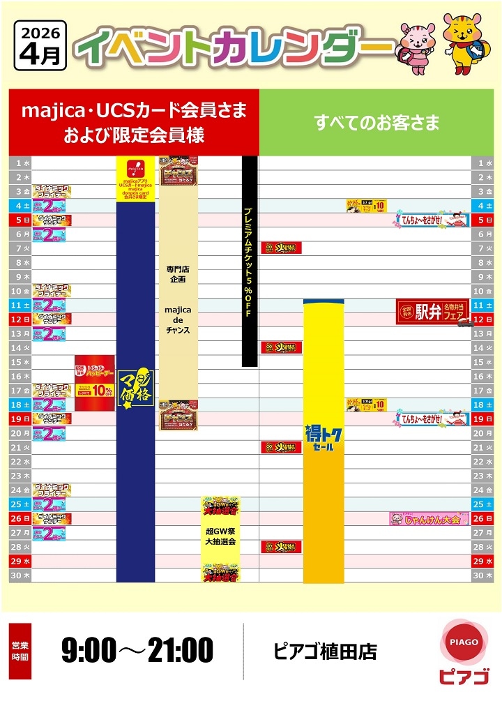 ピアゴ植田店限定! 月土はマジカで通常ポイント2倍!!