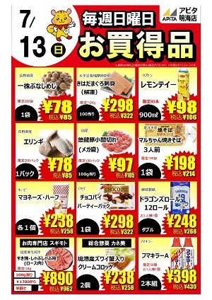 12月7日『日曜特売』食料を中心に、朝から夕方までお買得を盛りだくさんご用意致しております。