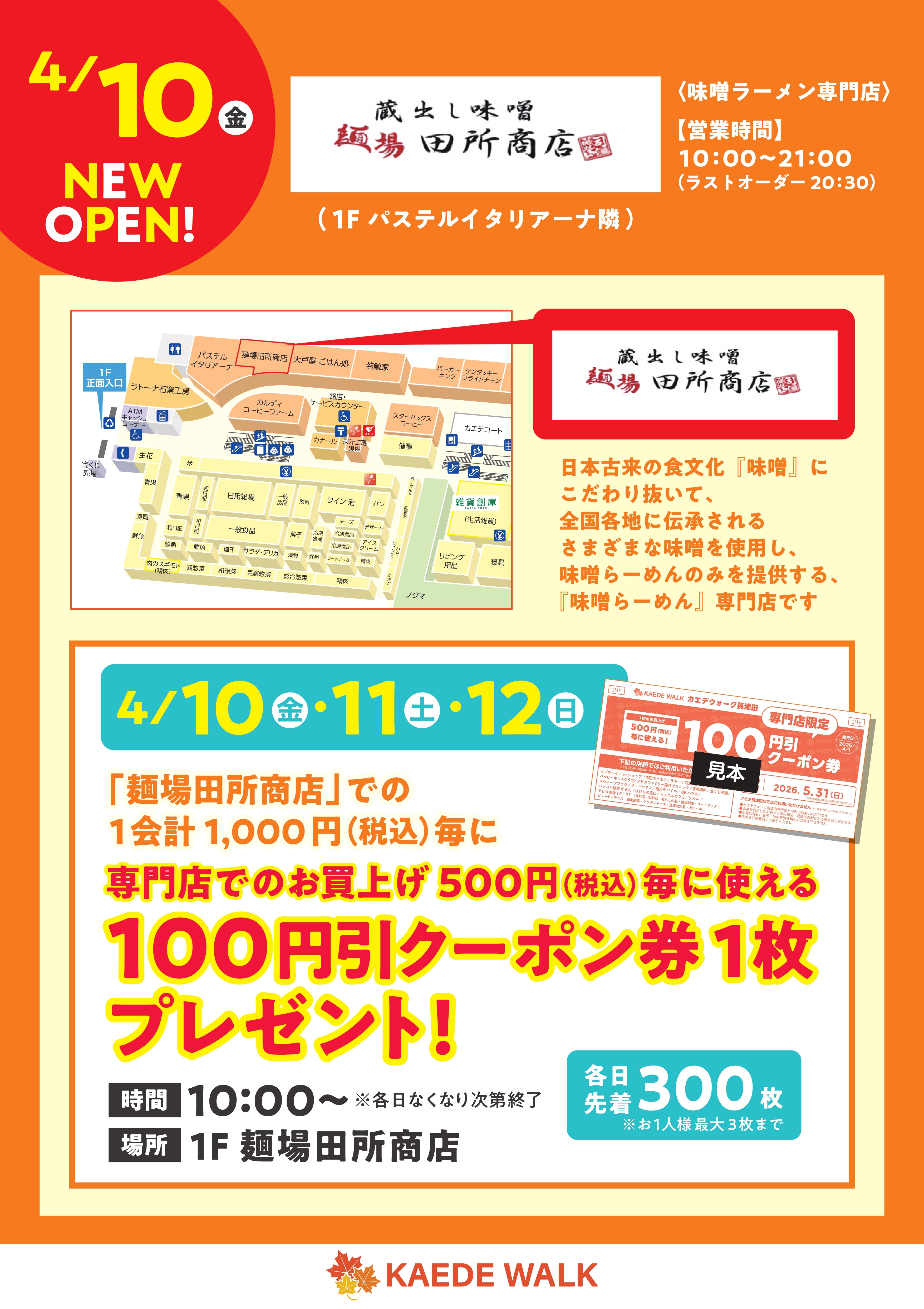 4/10(金) 麺場田所商店グランドオープンキャンペーン!▼詳しくはこちら▼ -