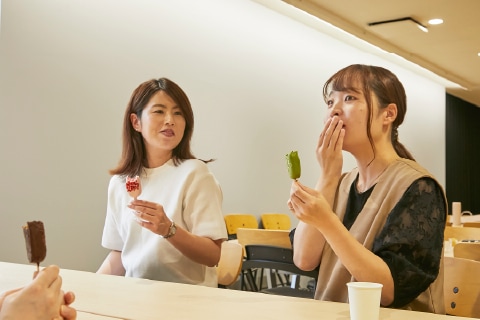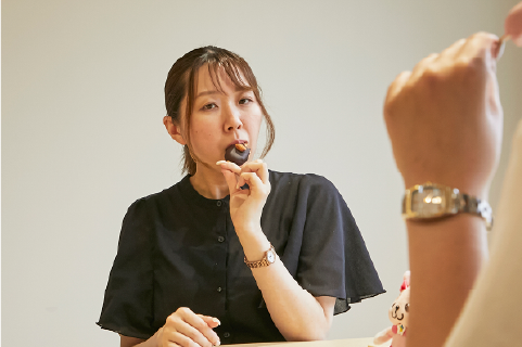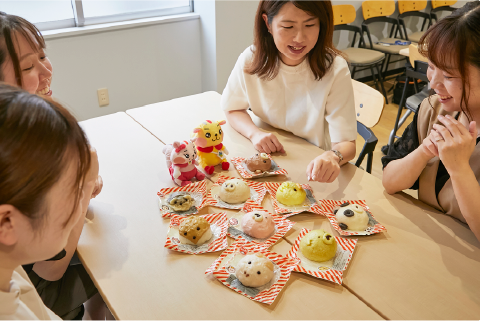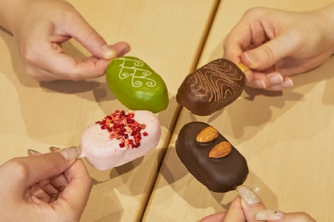 見た目が可愛いだけじゃなく、美味しさにもこだわっているんです。気温や湿度によって生地の水分量を変えて、職人さんが1つ1つ包んでいます。見た目も味も、9種類で全部違うの。