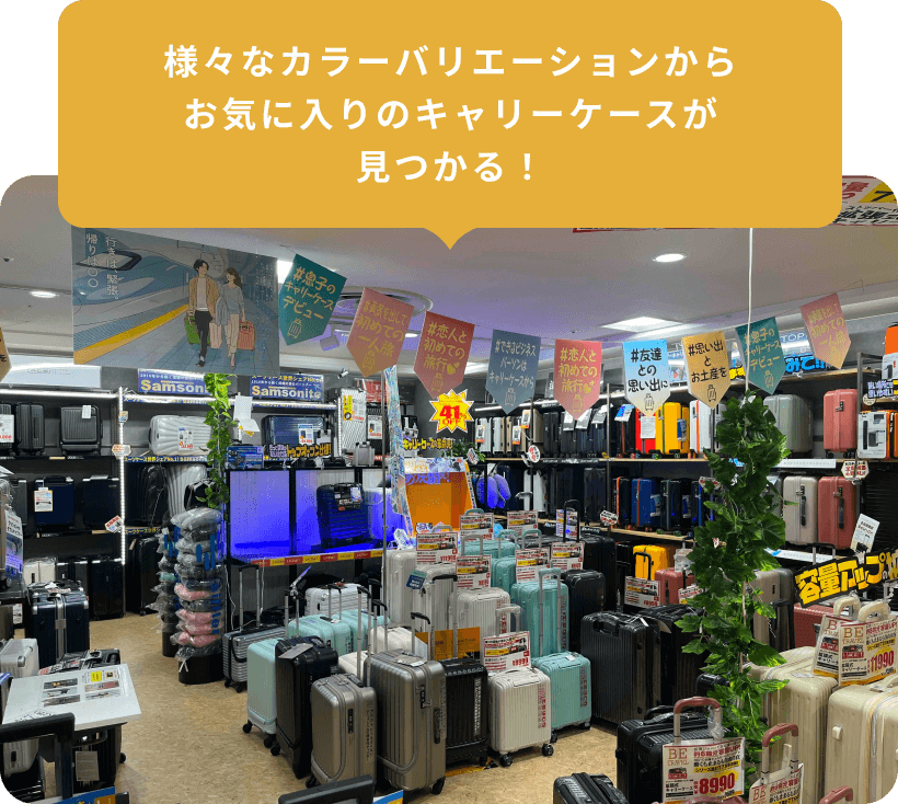 店舗で実物を比較しながら自分にあったキャリーケースを選びましょう。